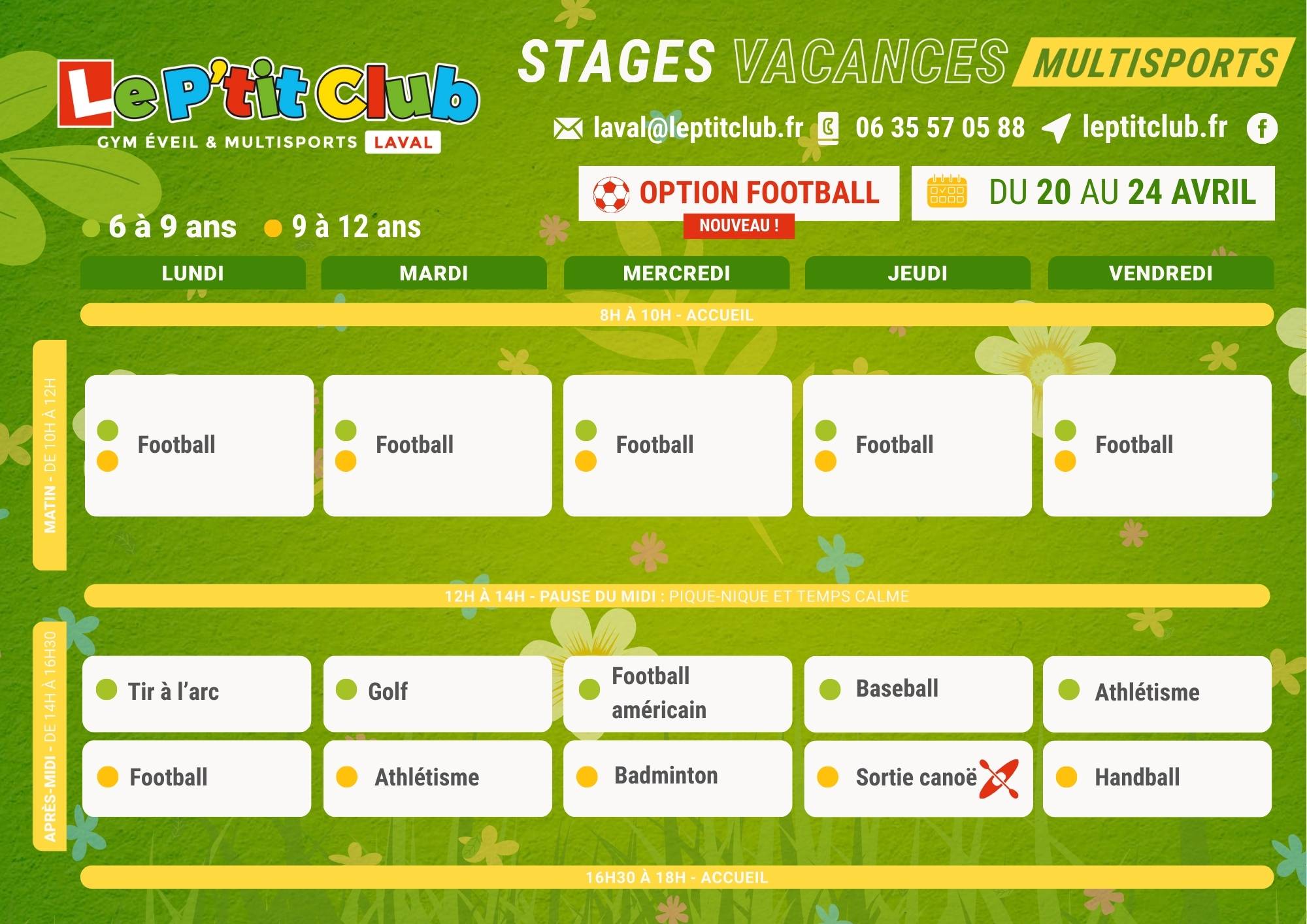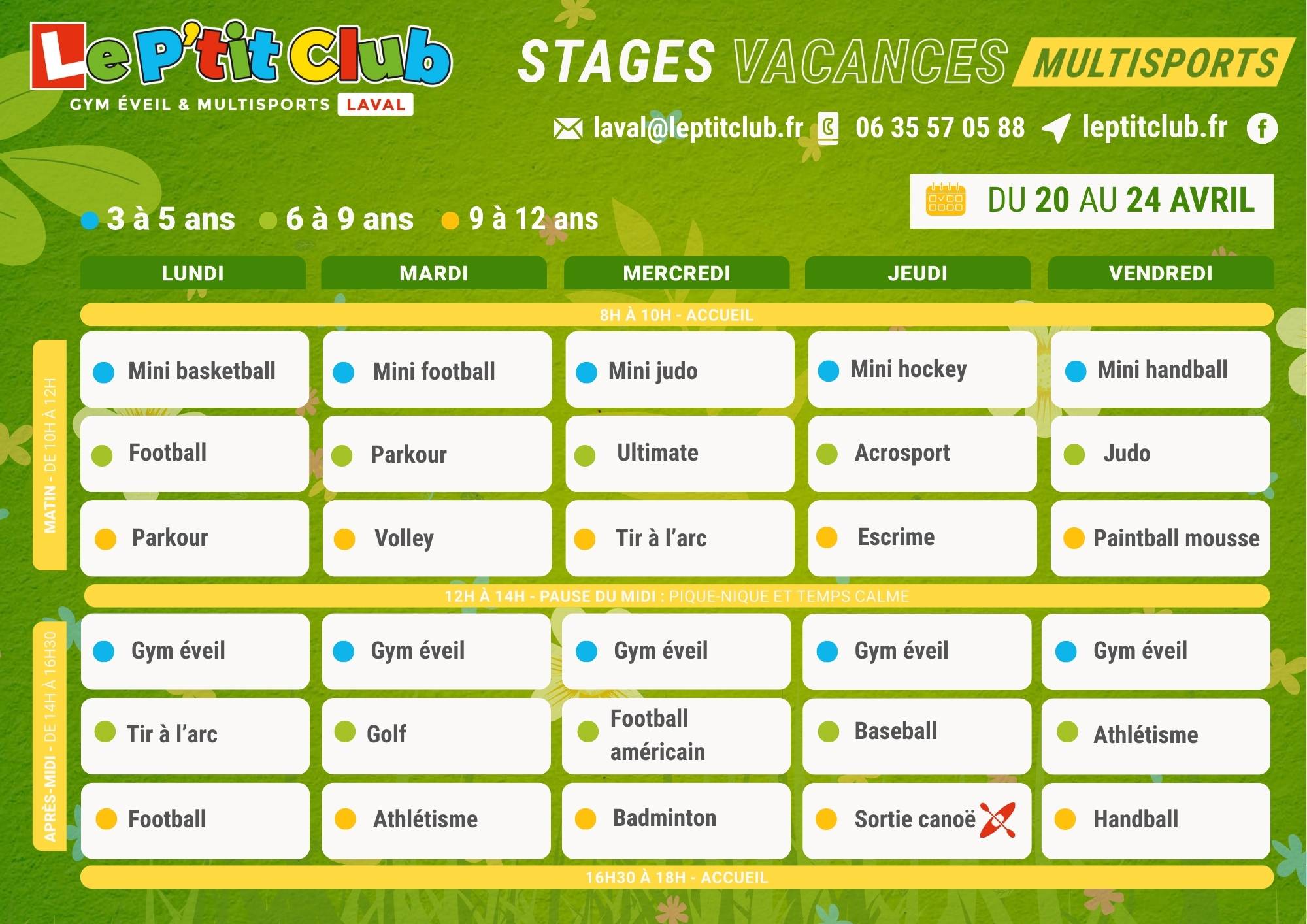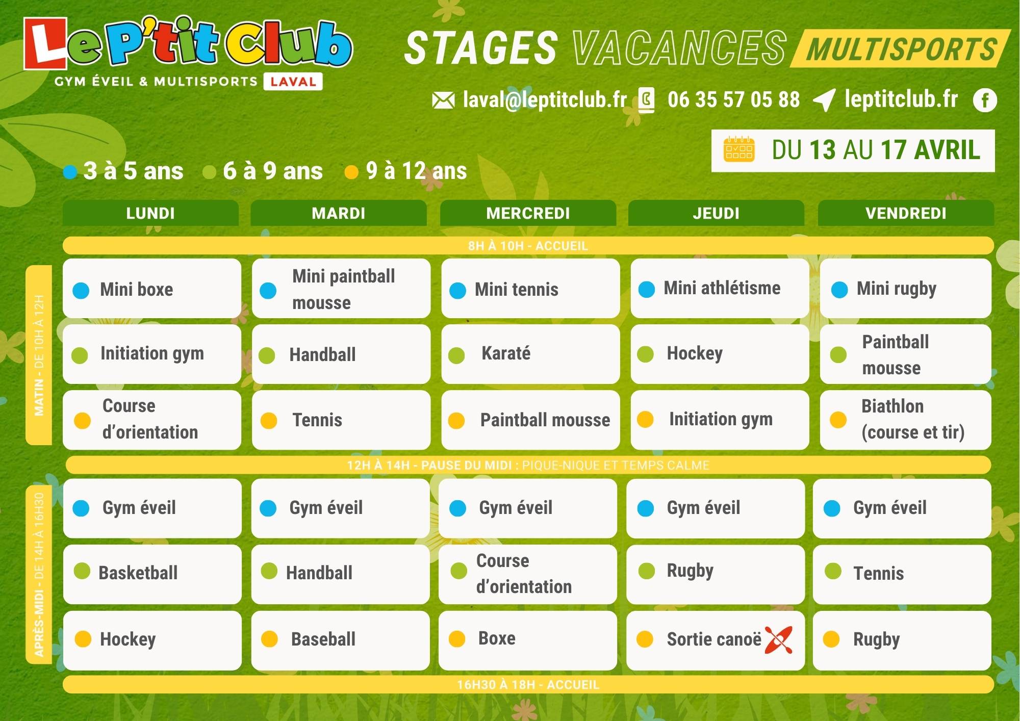 Nous proposons des activités sportives pour les enfants à Laval durant les vacances de Pâque du lundi 13 au vendredi 24 avril 2026.
