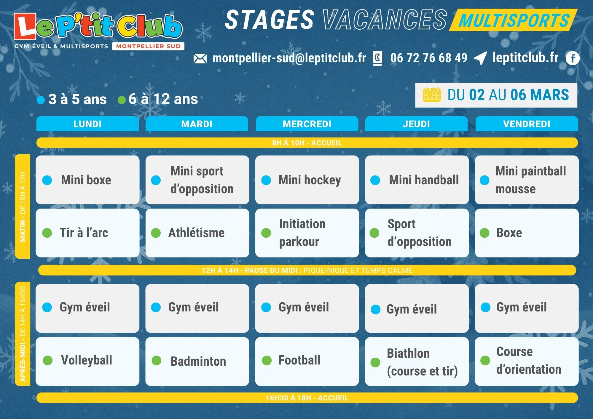 Planning 1 stages vacances d'Hiver 2026 Le P'tit Club Montpellier Sud