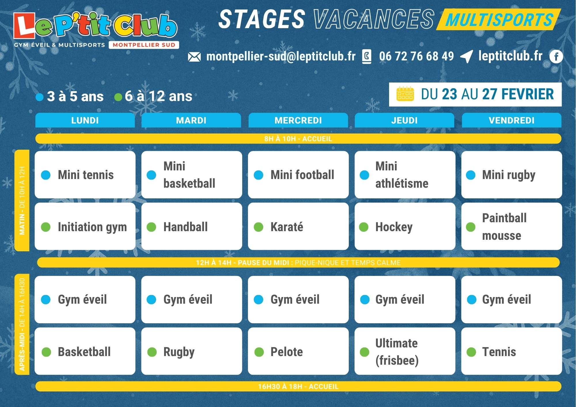 Planning 2 stages vacances d'Hiver 2026 Le P'tit Club Montpellier Sud